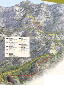 - El segon tram està definit com a “Esportiu” i acotat com a K4. S’inicia per un seguit de trams verticals successius que ens portarà a un llarg pont de 38m. Seguidament venen un seguit de trams verticals de 90º fins arribar a una zona de descans on trobem un pont de mico de 35m, bastant prescindible i evitable. Seguidament ens apropem a una secció maca composada per una escala helicoidal (en espiral) de 16m, seguida d’un tram vertical i aeri de 90º i un flanqueig per sobre d’un sostre amb “ambientillu”. Podrem descansar d’aquest tram intens en una tarima de fusta o no és permés ser-hi més de 4 pax. Encara ens quedarà ferrada per endavant. Tenim un seguit de trams verticals intercalats per feixes amb matolls on podrem descansar. Son 841m de recorregut i 375m de desnivell guanyat.